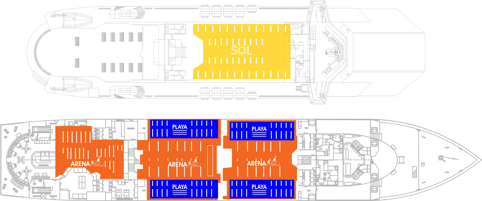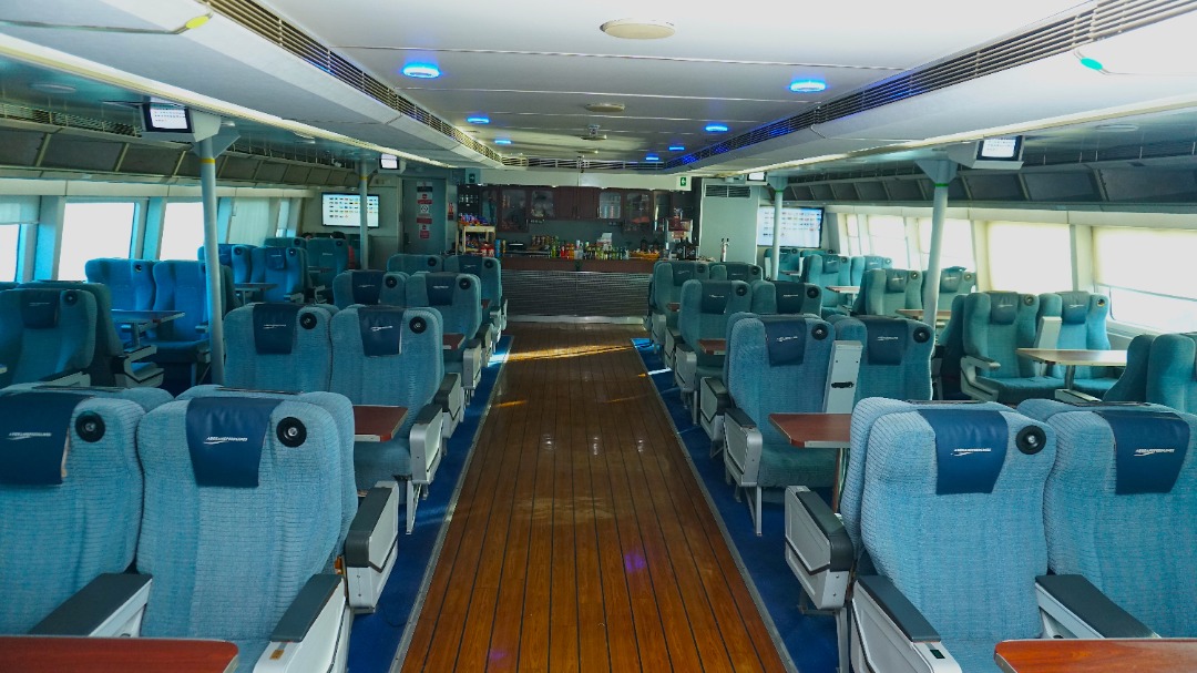 Esta área cubre las necesidades de los viajeros con un costo menor del boleto, disfrutando de la comodidad y rapidez de nuestra embarcación, además del servicio de alimentos y bebidas que se ofrece en esta área del barco.